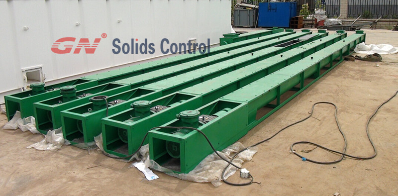 螺旋输送器是输送岩屑常规设备。客户可以选择螺杆直径长度,螺钉,螺杆转速,GNSC系列螺旋输送器的设计长度为12英尺每节,这种设计使螺旋输送器可以作为一种标准的易损件进行更换。GNSC系列螺旋输送器的螺旋叶片选用耐磨材质确保其寿命比竞争对手同类型产品要长。GNSC系列螺旋输送器的加工要求高的安全标准,其U型槽上需加盖防护栏或护罩以防异物进入槽内,并且有框架对输送器进行保护,和支撑,提高了整体设备的刚性,并提高了工作人员的操作安全性。