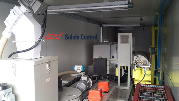 一套包含一台大转鼓泥浆离心机的絮凝加药系统,安装在40尺的集装箱内